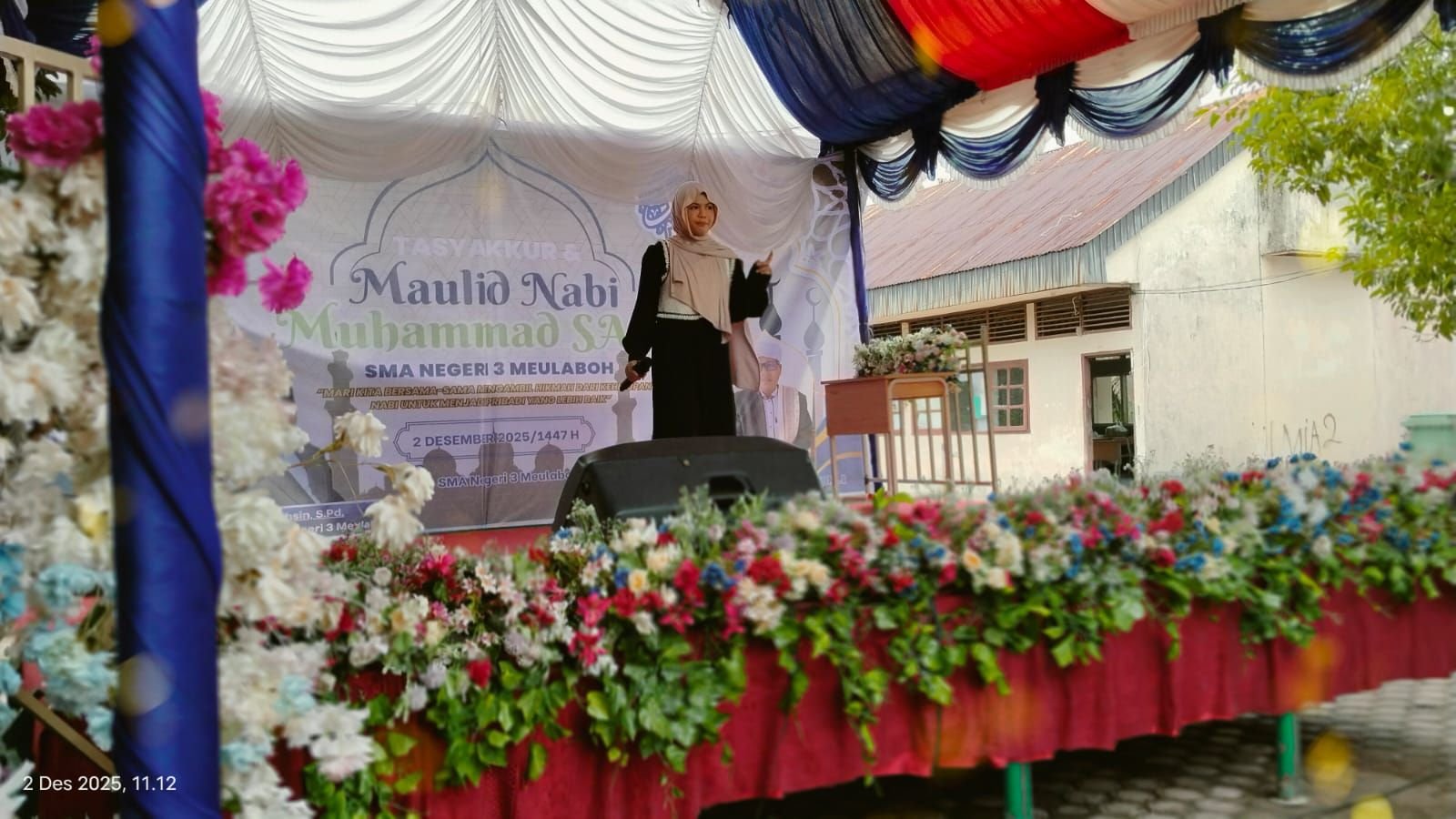 Tahun ini SMA Negeri 3 Meulaboh Kembali Gelar Tasyakkur Maulid Nabi Muhammad SAW 1447 H dengan penuh kegembiraan dan nuansa kebersamaan pada Selasa 2 Desember 2025 pagi.